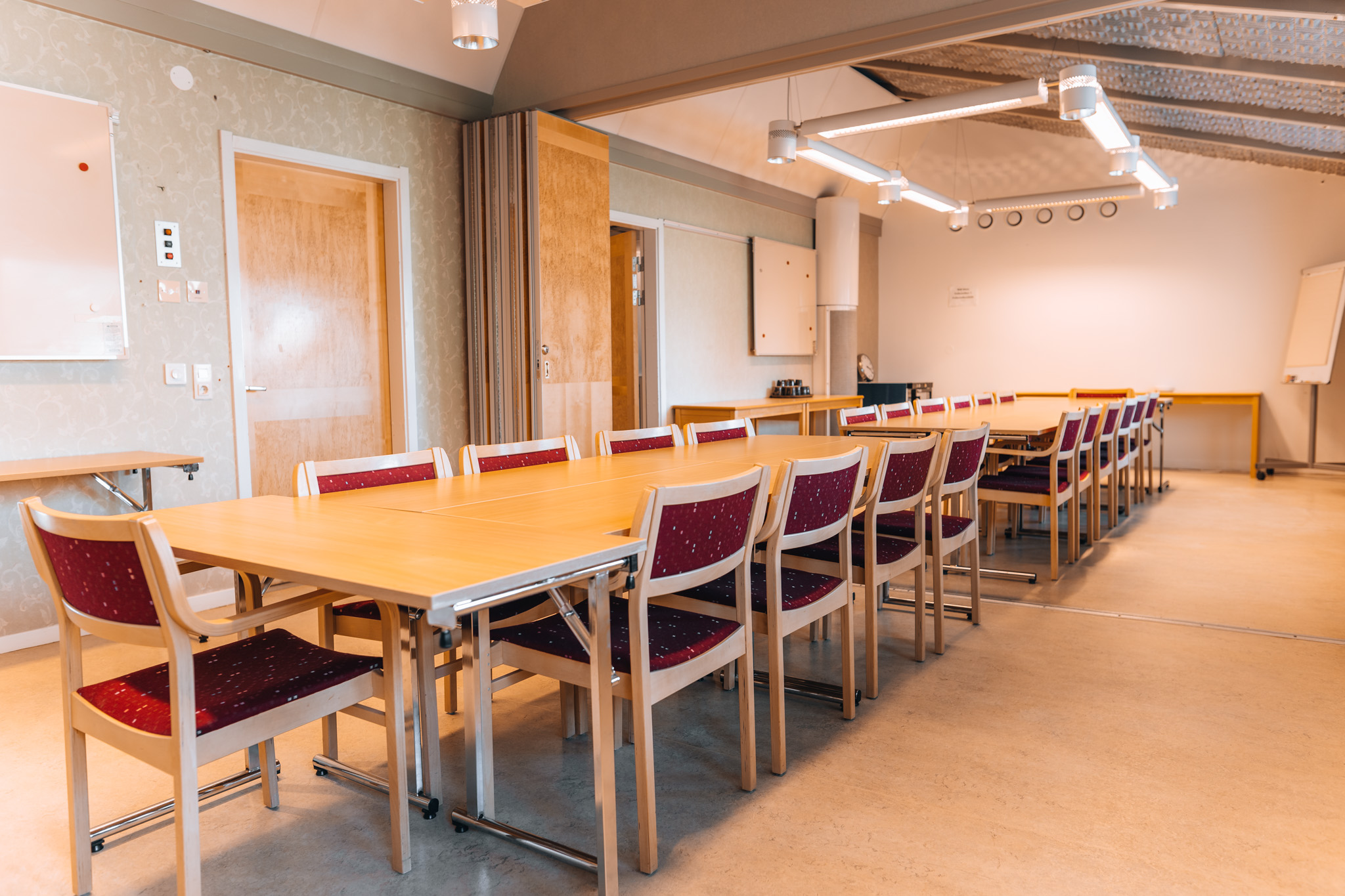 Har plats för 15 personer. Lokalen är även delbar till 2 mindre lokaler/loger. Tillgång till trådlöst internet, HD-projektor, dator, högtalare, whiteboardtavla, webbkonferens m.m.